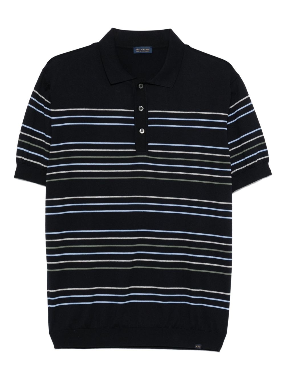 striped polo shirt Highlights - Midnight blue - Short front button fastening - Ribbed cuffs and hem - Short sleeves Made in Italy Composition Cotton 85%, Cashmere 15%