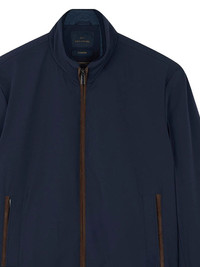 suede-detail bomber jacket Highlights - Navy blue - Zip fastening - Ribbed hem - Ribbed cuffs - Suede details - Long sleeves Imported Composition Outer: Goat Skin 100%, Polyester 88%, Elastane 12% Lining: Polyester 55% Washing instructions Machine Wash