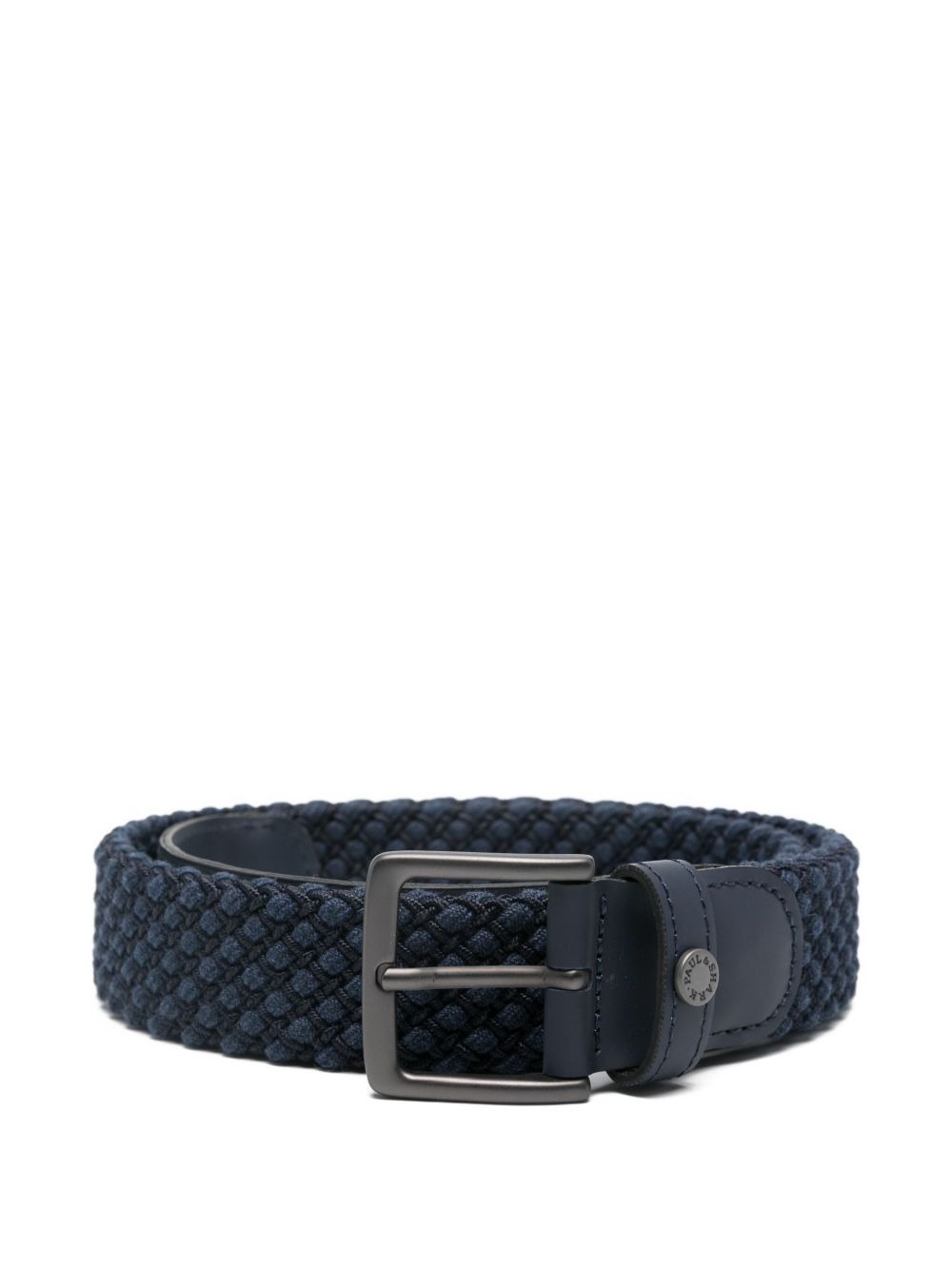 woven leather belt Highlights - Navy blue - Woven texture - Gunmetal buckle - Single-prong buckle - Leather keeper loop Imported Composition Fabric 100%, Calf Leather 100%