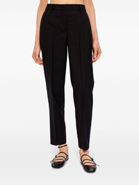 A Suit To Travel In tailored trousers Highlights - Black - Wool - Mid-rise - Belt loops - Concealed front fastening - Two side inset pockets - Two rear welt pockets - Pressed crease - Tailored cut Made in Italy Composition Wool 100% SIZE & FIT FittingInformation Designed for a slim fit, these trousers offer a close fit at the waist, allowing a comfortable close fit and some movement over the leg Made from a midweight non-stretch fabric This piece fits true to size – take your usual size