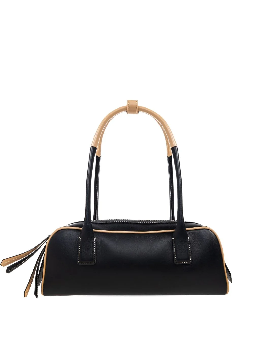 Agatha shoulder bag Highlights - Black - Contrast stitching - Dual zip fastening - Top handles Imported Composition Outer: Calf Leather 100% Lining: Polyamide 50%, Polyurethane 50% SIZE & FIT Measurement DEPTH 3.74 in(9.5 cm) HEIGHT 4.33 in(11 cm) WIDTH 11.81 in(30 cm)