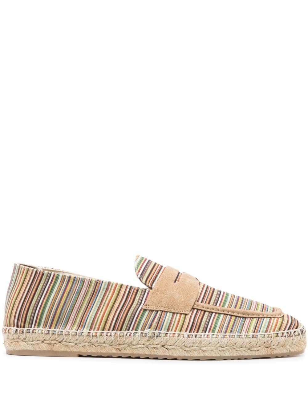 Alvarez striped espadrilles Highlights - Multicolour - Suede trim - Vertical stripe pattern - Square toe - Penny slot - Branded insole - Braided raffia sole - Rubber outsole - Slip-on style Imported Composition Lining: Fabric 100% Sole: Rubber 100% Outer: Fabric 100%, Calf Leather 100% SIZE & FIT Measurement HEEL 0.86 in(2.2 cm)