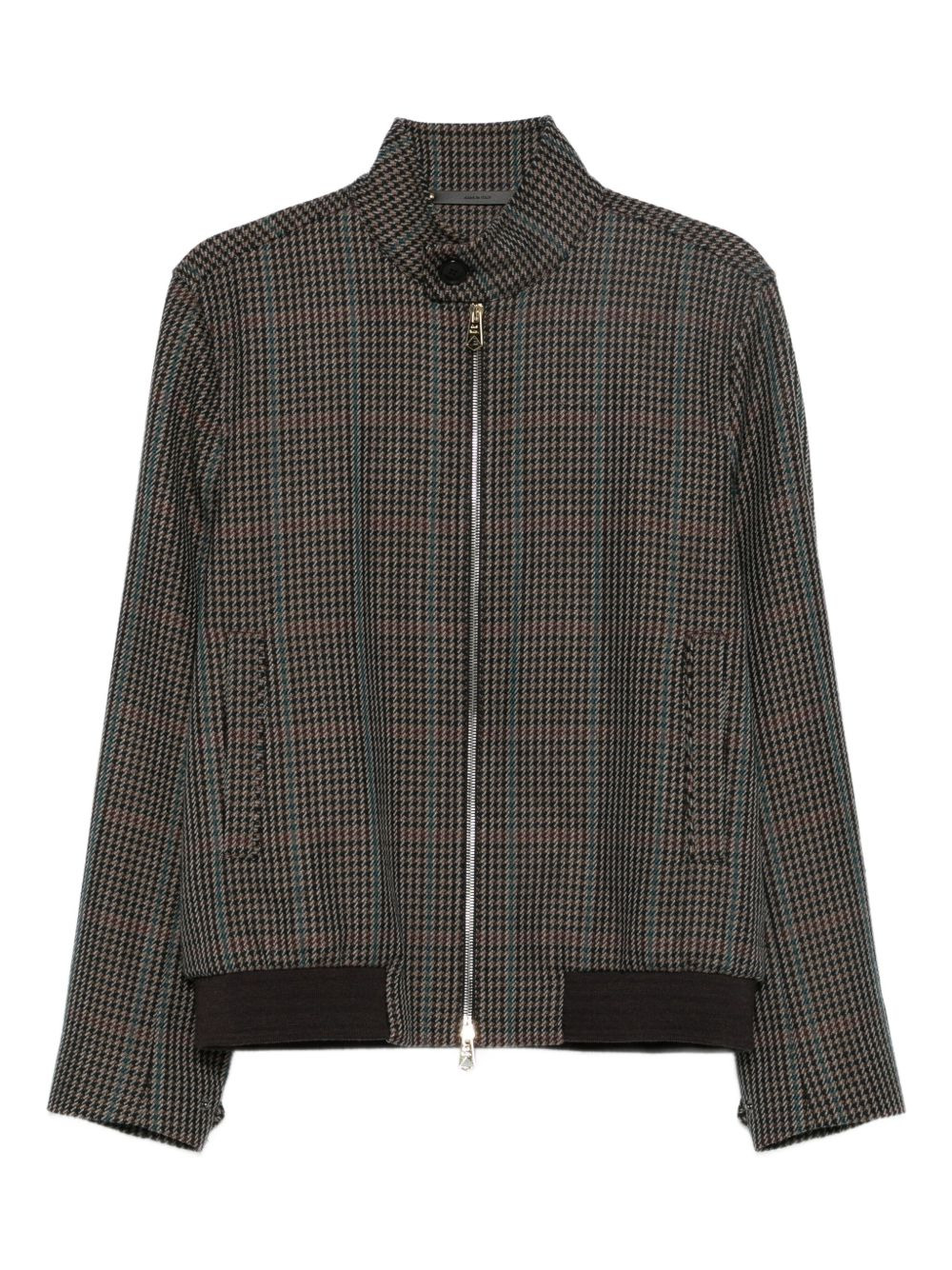 checked zip-up bomber jacket Highlights - Grey - Checked pattern - Front zip fastening - Ribbed hem and cuffs - Side welt pockets Made in Italy Composition Wool 100%, Nylon 100% SIZE & FIT Model measurements Height 6 ft 2 in(1.89 m) Bust/Chest 34.25 in(87 cm) Hips 34.25 in(87 cm) Waist 27.95 in(71 cm) Washing instructions Read Manufacturer Guidelines