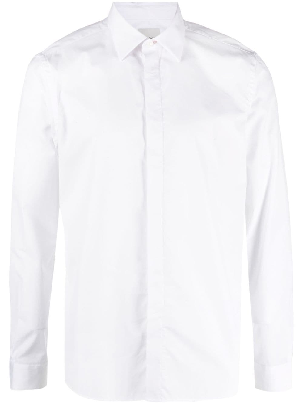 classic-collar cotton shirt Highlights - White - Cotton - Classic collar - Concealed front fastening - Long sleeves - Buttoned cuffs - Curved hem Made in Italy Composition Cotton 100% SIZE & FIT Model measurements Height 6 ft 2 in(1.88 m) Bust/Chest 36.61 in(93 cm) Hips 35.82 in(91 cm) Waist 27.95 in(71 cm) FittingInformation Designed for a slim fit, offering a comfortable fit that sits just away from the body The dart stitching adds structure and a closer fit in the torso of this piece Made from a midweight non-stretch fabric This piece fits true to size – take your usual size