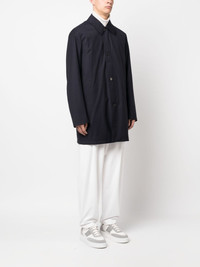 classic-collar cotton trench-coat Highlights - Navy blue - Cotton/wool - Classic collar - Front button fastening - Long sleeves - Two side slit pockets - Internal gilet: - Panelled design - Round neck - Front button fastening - Sleeveless Made in Italy Composition Lining: Cotton 100%, Cupro 100%, Polyester 100% Outer: Wool 100% SIZE & FIT Model measurements Height 6 ft 1 in(1.86 m) Bust/Chest 36.61 in(93 cm) Hips 37 in(94 cm) Waist 28.74 in(73 cm) Washing instructions Dry Clean Only