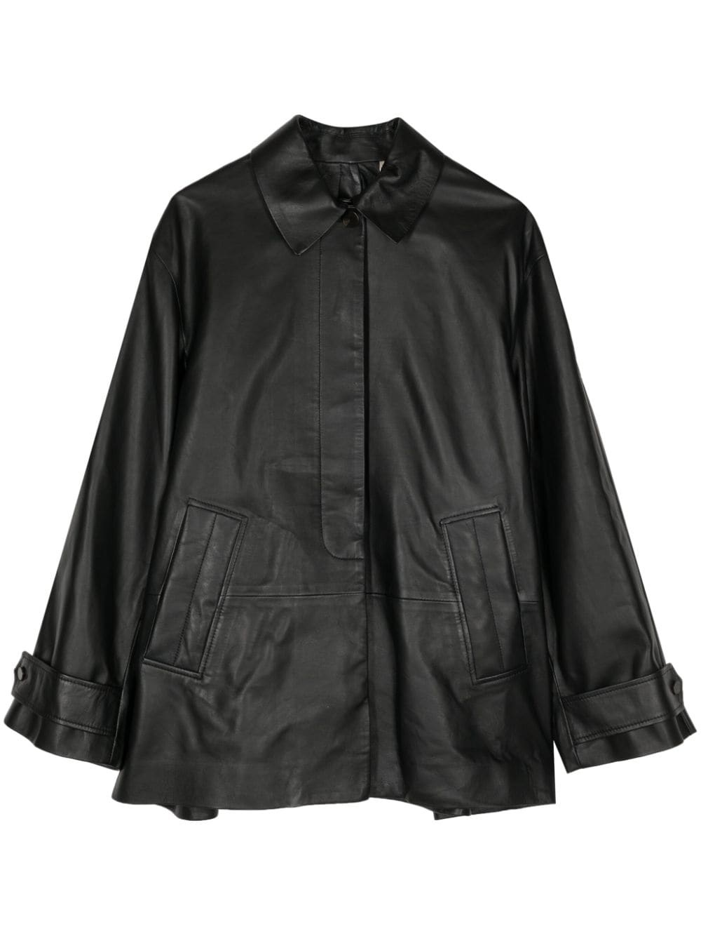 classic-collar leather jacket Highlights - Black - Leather - Seam detailing - Classic collar - Long sleeves - Buttoned cuffs - Two side welt pockets - Straight hem - Front and rear button fastening Imported Composition Outer: Leather 100% Lining: Cupro 100%