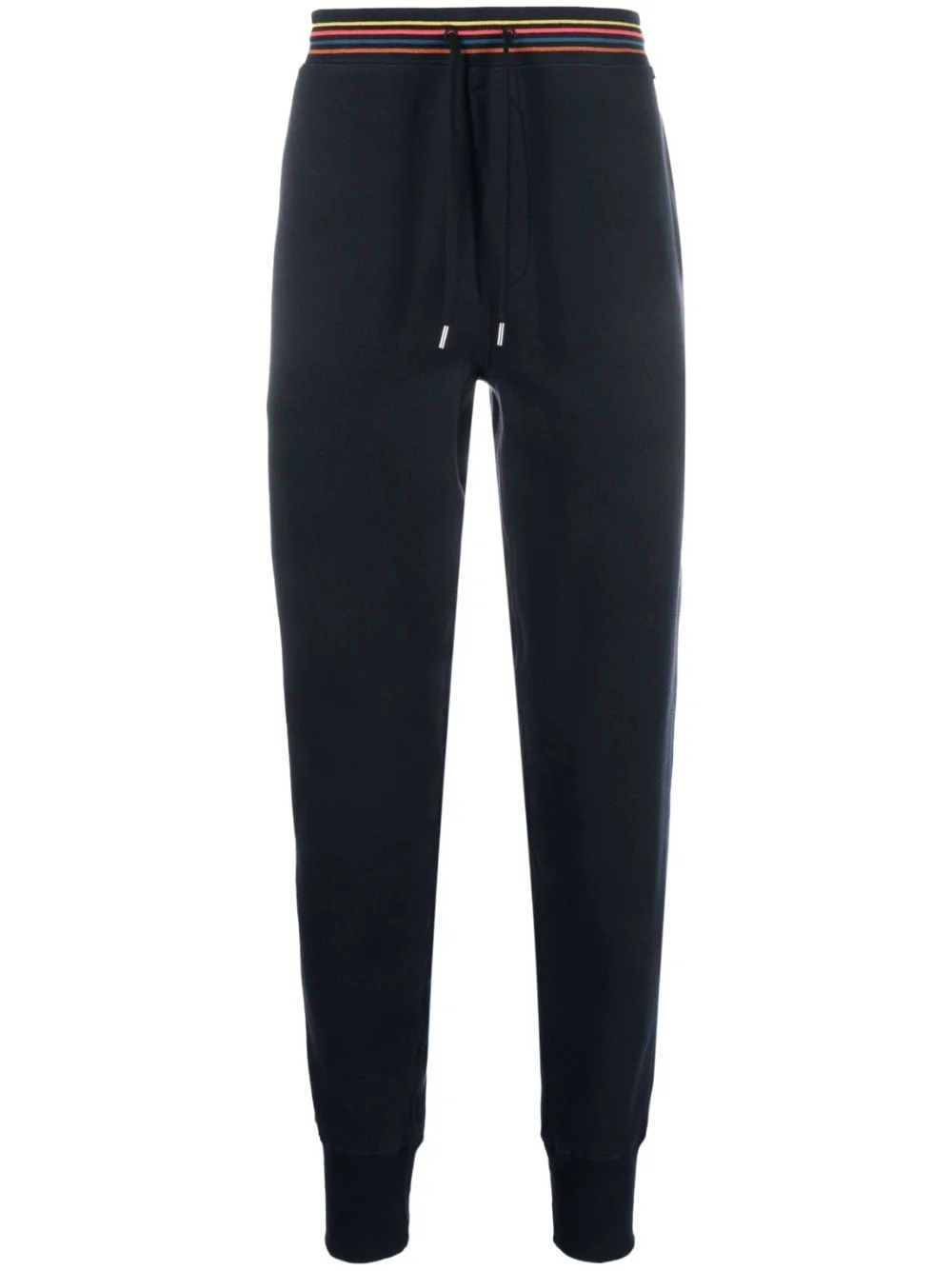 stripe-trim track pants Highlights - Navy blue - Cotton - Contrasting trim - Elasticated ankles - Mid-rise - Elasticated drawstring waistband - Two side inset pockets Imported Composition Cotton 100% SIZE & FIT Model measurements Height 6 ft 2 in(1.88 m) Bust/Chest 34.64 in(88 cm) Hips 33.85 in(86 cm) Waist 27.55 in(70 cm) Measurement FRONT RISE 11.41 in(29 cm) INSIDE LEG 29.13 in(74 cm) Hem Width 8.66 in(22 cm) WAIST 29.13 in(74 cm) Outside Leg 39.17 in(99.5 cm) FittingInformation Designed for a slim tapered leg, offering a close fit that sits just away from the leg with a closer fit towards the ankle Adjust this piece’s waistband to your preference using the drawstring Made from a midweight non-stretch fabric, this piece offers minimal elasticity when worn This piece fits true to size – take your usual size Washing instructions Machine Wash