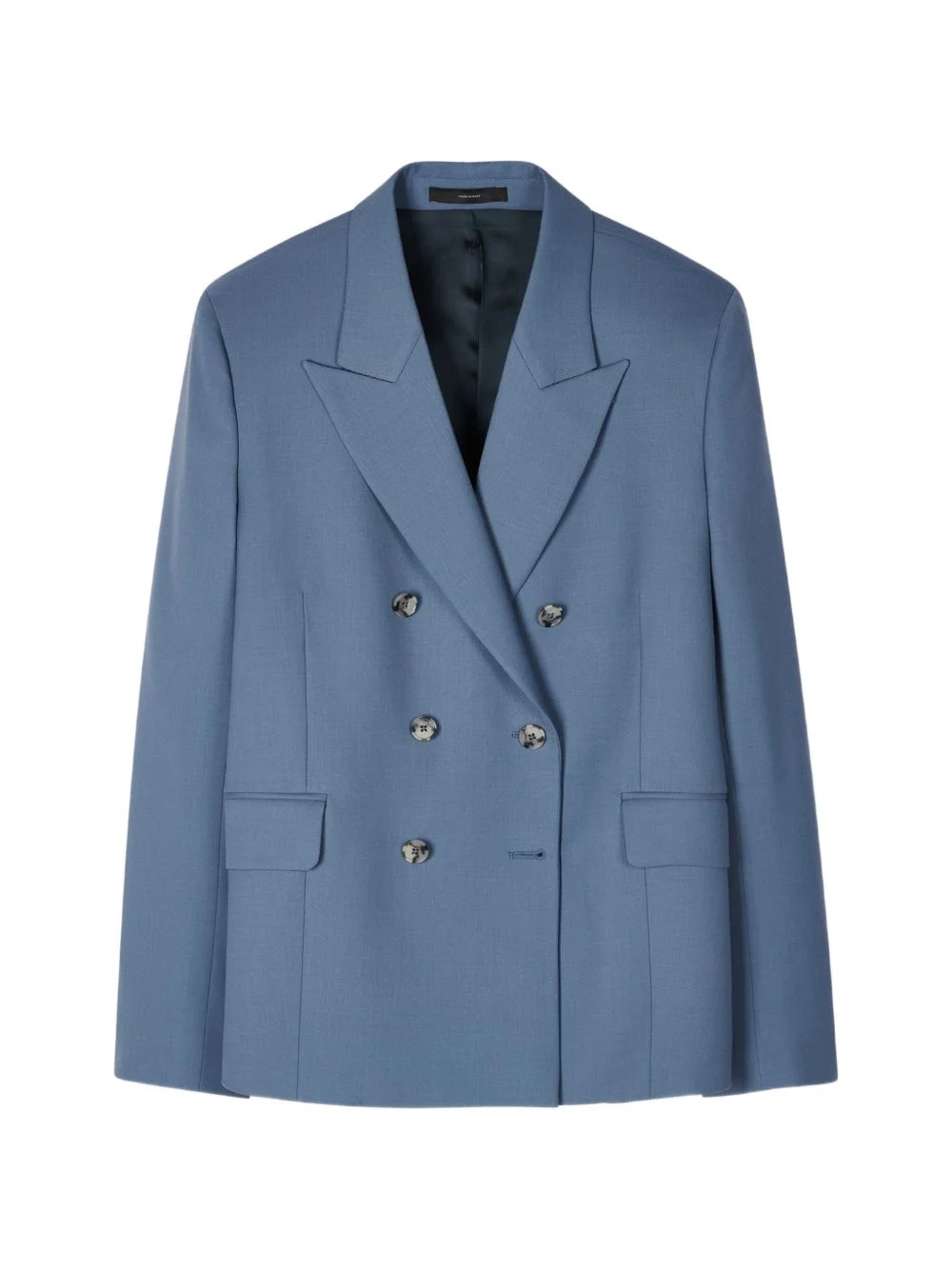 double-breasted blazer Highlights - Blue - Double-breasted - Button fastening - Peaked lapels - Long sleeves Made in Italy Composition Outer: Wool 100% Lining: Viscose 100% Washing instructions Dry Clean Only