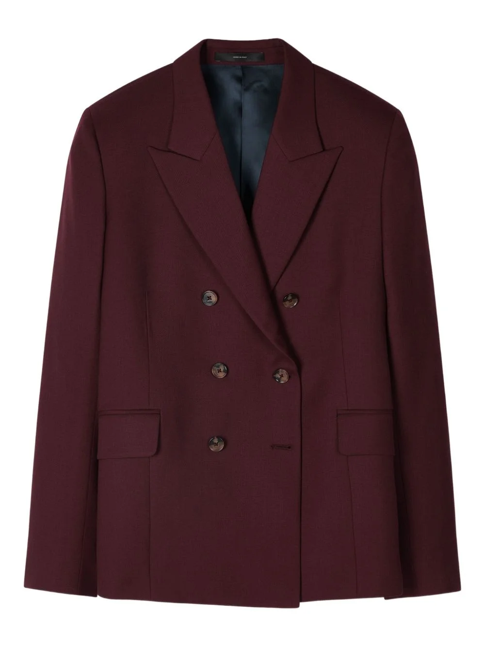 double-breasted blazer Highlights - Dark red - Double-breasted - Button fastening - Notched lapels - Flap pockets Made in Italy Composition Outer: Wool 100% Lining: Viscose 100% Washing instructions Dry Clean Only