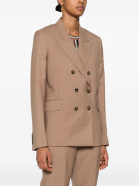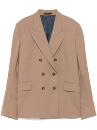 double-breasted blazer Highlights - Light brown - Wool - Twill weave - Double-breasted button fastening - Peak lapels - Shoulder pads - Long sleeves - Two side flap pockets - American rear vent - Full lining - Straight hem Made in Italy Composition Lining: Viscose 100% Outer: Wool 100% SIZE & FIT Model measurements Height 5 ft 10 in(1.77 m) Bust/Chest 33.07 in(84 cm) Hips 37 in(94 cm) Waist 24.8 in(63 cm) FittingInformation Designed for a slim fit that sits just away from the body offering a close yet comfortable fit The internal shoulder pads offer a structured shape Made from a midweight non-stretch fabric