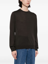 fine-knit merino wool jumper Highlights - Dark green - Merino wool - Fine knit - Semi-sheer construction - Embroidered logo at the sleeve - Ribbed trim - Crew neck - Long sleeves Imported Composition Merino 100% SIZE & FIT Model measurements Height 6 ft 2 in(1.87 m) Bust/Chest 33.07 in(84 cm) Hips 35.43 in(90 cm) Waist 26.77 in(68 cm) FittingInformation Designed for a regular fit, offering a comfortable loose fit throughout the body The ribbed hem offers a close, comfortable fit Made from a midweight non-stretch fabric, this piece offers minimal elasticity when worn This piece fits true to size – take your usual size Measurement CHEST 40.94 in(104 cm) SLEEVE LENGTH 32.87 in(83.5 cm) Shoulder Width 15.94 in(40.5 cm) Washing instructions Hand Wash