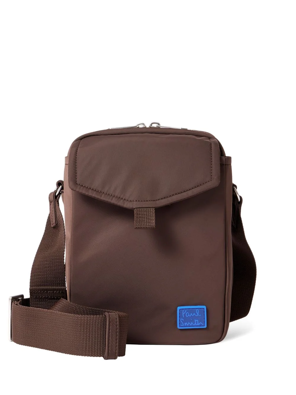 flap-pocket messenger bag Highlights - Brown - Zip fastening - Adjustable strap - Flap-pocket closure - Logo patch - Press-stud fastening Imported Composition Outer: Recycled Polyester 100%, Leather 100% Lining: Recycled Polyester 100% SIZE & FIT Measurement DEPTH 3.34 in(8.5 cm) HEIGHT 6.29 in(16 cm) WIDTH 8.66 in(22 cm)