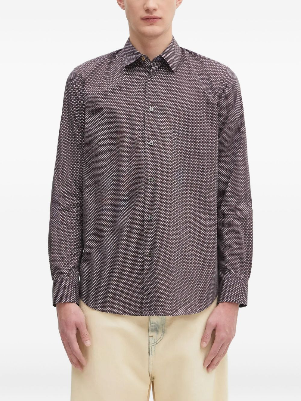 geometric-print shirt Highlights - Dark brown - Geometric print - Pointed collar - Long sleeves - Button fastening - Curved hem Imported Composition Cotton 100% Washing instructions Read Manufacturer Guidelines