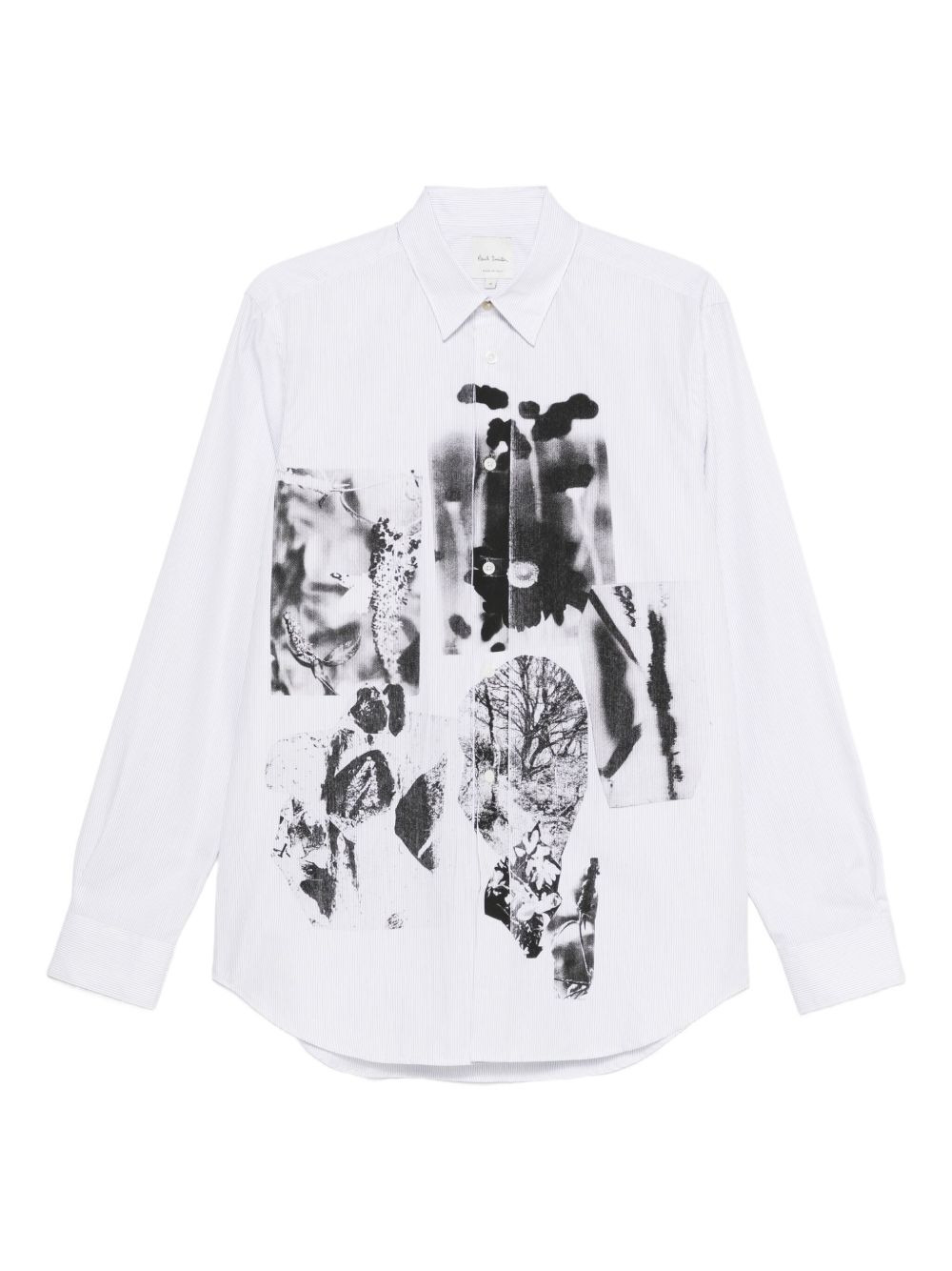 graphic-print shirt Highlights - White - Pinstripe pattern - Graphic print - Long sleeves - Button fastening - Point collar Made in Italy Composition Cotton 100% SIZE & FIT Model measurements Height 6 ft 0 in(1.84 m) Bust/Chest 35.82 in(91 cm) Hips 37 in(94 cm) Waist 28.34 in(72 cm) Washing instructions Read Manufacturer Guidelines