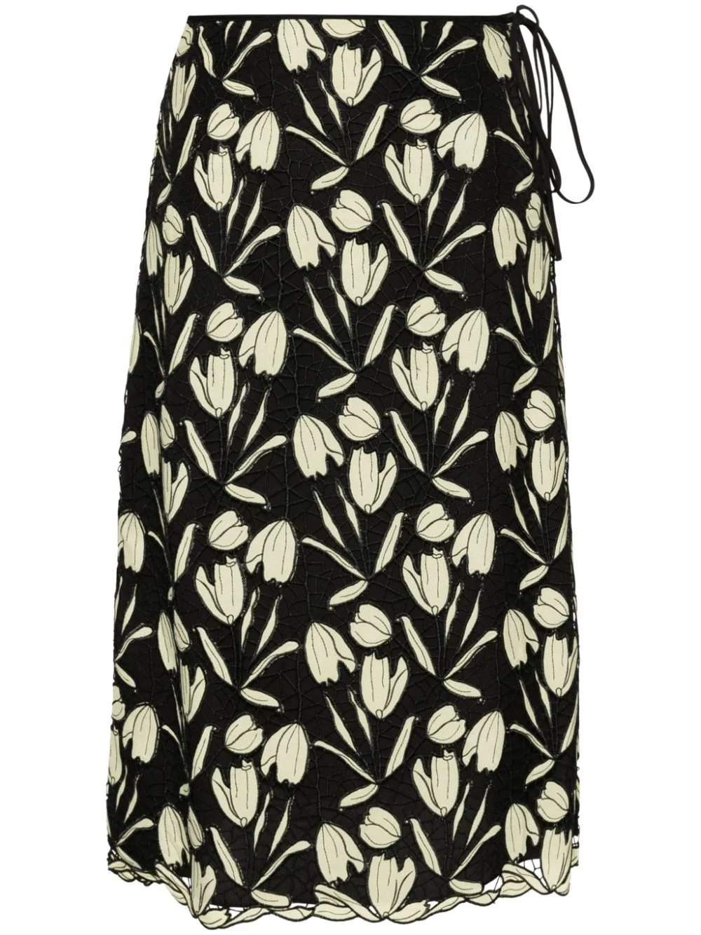 guipure-lace midi skirt Highlights - Black/beige - Guipure lace - A-line - Side slit - Scallop hem - Full lining - Mid-length - Concealed side zip fastening - Side tie fastening Imported Composition Lining: Polyester 100% Outer: Polyester 100% Washing instructions Read Manufacturer Guidelines