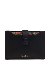 leather cardholder Highlights - Black - Strap and press-stud fastening - Internal card slots - Striped lining Made in Italy Composition Outer: Calf Leather 50%, Lambskin 50% SIZE & FIT Measurement LENGTH 4.13 in(10.5 cm) WIDTH 2.95 in(7.5 cm)