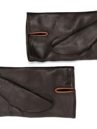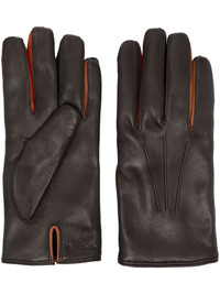 leather gloves Highlights - Chocolate brown - Lambskin - Smooth grain - Full-finger design - Contrasting panel detail - Pintuck detailing - Debossed logo to the rear - Wool lining Made in Italy Composition Lining: Wool 100% Outer: Lambskin 100%
