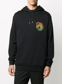 logo print drawstring hoodie Highlights - Black/multicolour - Cotton-blend - Logo print at the chest - Straight hem - Drawstring hood - Long sleeves - Front pouch pocket Imported Composition Cotton 86%, Polyamide 14% SIZE & FIT Model measurements Height 6 ft 1 in(1.86 m) Bust/Chest 35.43 in(90 cm) Hips 35.43 in(90 cm) Waist 29.92 in(76 cm) FittingInformation This piece fits true to size. We recommend you get your regular size Cut for a relaxed fit Made with a mid-weight fabric Washing instructions Machine Wash