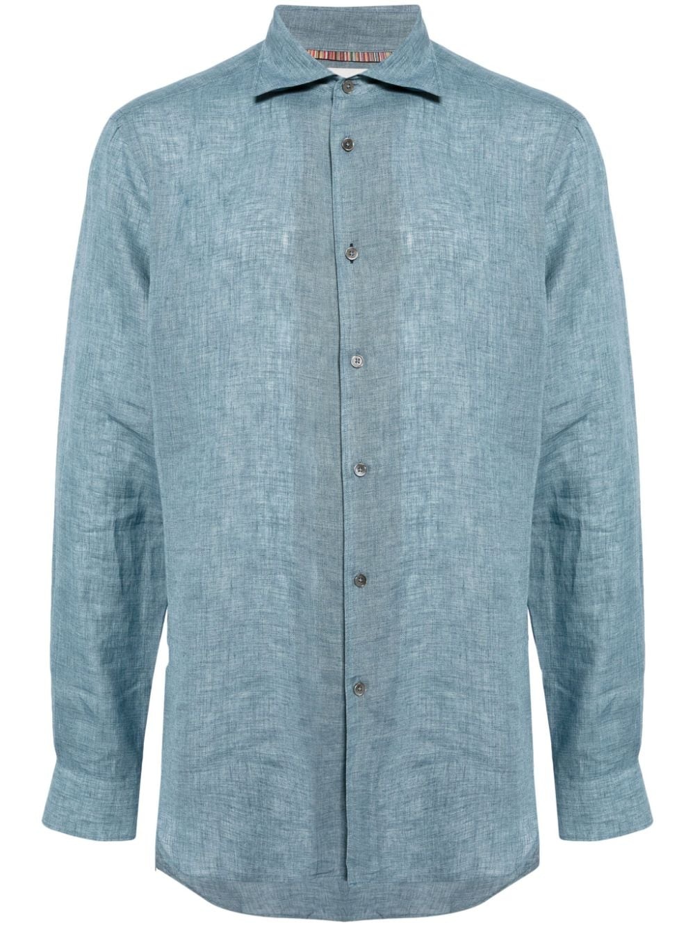 long-sleeve linen shirt Highlights - Light blue - Linen - Classic collar - Front button fastening - Long sleeves - Buttoned cuffs - Curved hem Made in Italy Composition Linen/Flax 100% SIZE & FIT Model measurements Height 6 ft 2 in(1.87 m) Bust/Chest 37.4 in(95 cm) Hips 37 in(94 cm) Waist 31.49 in(80 cm) FittingInformation Designed to be unstructured, offering a loose fit throughout Made from a midweight non-stretch fabric This piece fits true to size – take your usual size