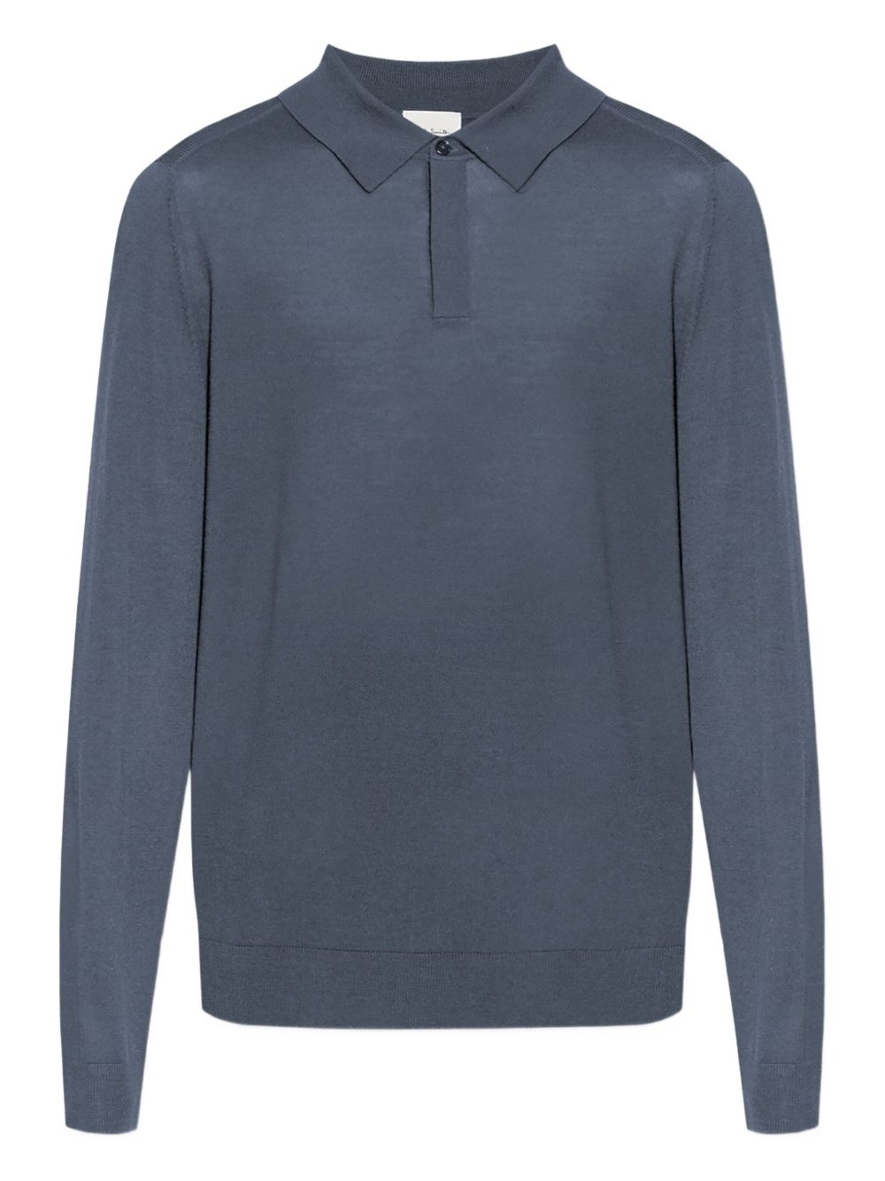 merino-wool polo shirt Highlights - Steel blue - Polo neck - Long sleeves - Button fastening - Ribbed trims Imported Composition Outer: Merino 100% Washing instructions Hand Wash