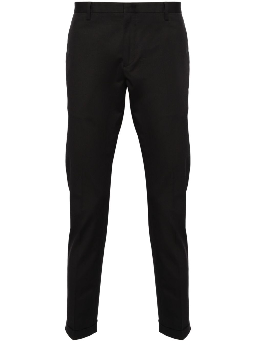 mid-rise tapered chinos Highlights - Midnight blue - Cotton blend - Twill weave - Pressed crease - Belt loops - Concealed front fastening - Two side slit pockets - Rear welt pocket - Tapered leg - Turn-up hem Imported Composition Cotton 96%, Spandex/Elastane 4% SIZE & FIT Model measurements Height 6 ft 2 in(1.89 m) Bust/Chest 39.76 in(101 cm) Hips 37.4 in(95 cm) Waist 29.92 in(76 cm) FittingInformation Designed for a slim fit, offering a comfortable fit that sits just away from the leg Made from a midweight stretch fabric, this piece offers elasticity and flexibility when worn This piece fits true to size – take your usual size