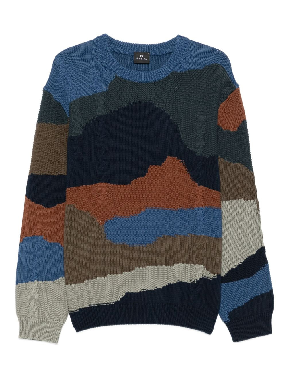Mountains cable-knit colour-block sweater