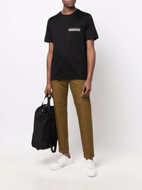 pocket cotton T-Shirt black cotton jersey knit chest patch pocket embroidered edge artist stripe pattern round neck short sleeves straight hem Made in Italy Composition Cotton 100% SIZE & FIT Model measurements Height 6 ft 2 in(1.88 m) Bust/Chest 36.61 in(93 cm) Hips 35.82 in(91 cm) Waist 27.95 in(71 cm) Measurement CHEST 37.79 in(96 cm) SLEEVE LENGTH 17.32 in(44 cm) LENGTH 27.55 in(70 cm) Shoulder Width 16.92 in(43 cm) Washing instructions Machine Wash