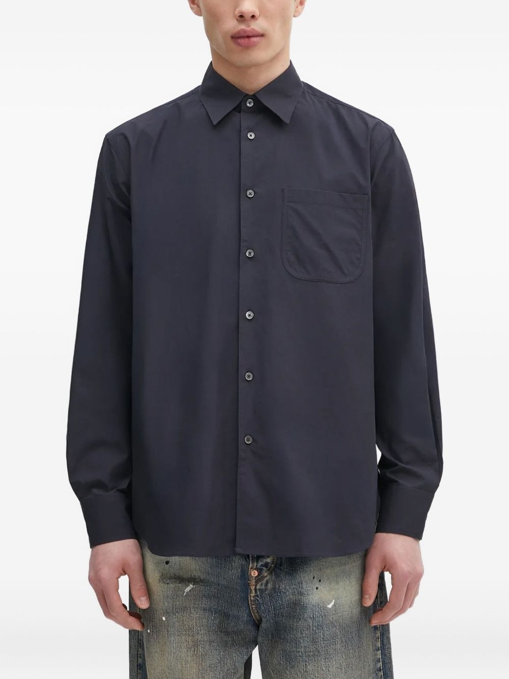 pocket long-sleeve shirt Highlights - Dark blue - Long sleeves - Button fastening - Classic collar - Chest pocket - Straight hemline Made in Italy Composition Cotton 100% Washing instructions Read Manufacturer Guidelines