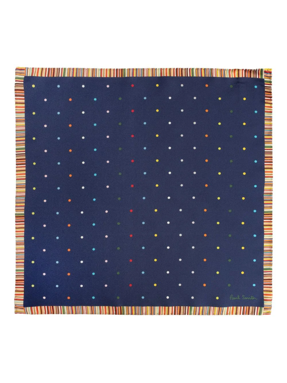 polka-dot silk pocket square Highlights - Navy blue - Polka-dot print - Striped border - Silk Made in Italy Composition Silk 100% SIZE & FIT Measurement LENGTH 12.59 in(32 cm) WIDTH 12.59 in(32 cm) Washing instructions Read Manufacturer Guidelines