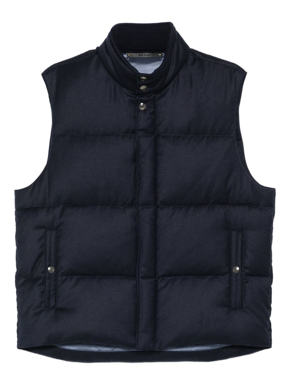 press-stud quilted gilet Highlights - Blue - Quilted - Press-stud fastening - Stand-up collar - Sleeveless - Side press-stud pockets Imported Composition Outer: Wool 90%, Cashmere 10% Lining: Viscose 100% Washing instructions Read Manufacturer Guidelines