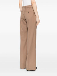 pressed-crease wool trousers Highlights - Caramel brown - Wool - Pressed crease - Belt loops - Off-centre front button fastening - Two side slit pockets - Two rear button-fastening jetted pockets - Flared design Made in Italy Composition Wool 100% SIZE & FIT Model measurements Height 5 ft 10 in(1.78 m) Bust/Chest 32.67 in(83 cm) Hips 37 in(94 cm) Waist 25.59 in(65 cm) FittingInformation Designed with a bootcut leg, these trousers allow for a close fit at the waist and with an unrestricted, comfortable fit and additional room at the calves Made from a midweight non-stretch fabric This piece fits true to size – take your usual size