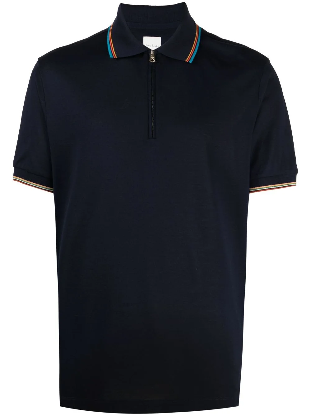rainbow stripe-detail cotton polo shirt Highlights - Navy blue - Cotton - Pique weave - Rainbow stripe detailing - Polo collar - Short front zip fastening - Short sleeves - Ribbed cuffs - Straight hem Made in Italy Composition Cotton 100% SIZE & FIT Model measurements Height 6 ft 2 in(1.87 m) Bust/Chest 36.22 in(92 cm) Hips 37.79 in(96 cm) Waist 28.34 in(72 cm) FittingInformation Designed for a regular fit, this polo shirt offers a comfortable loose fit throughout the body Made from a midweight non-stretch fabric, this piece offers minimal elasticity when worn This piece fits true to size – take your usual size Washing instructions Machine Wash