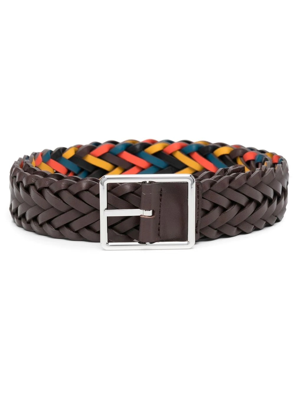 reversible braided belt calf leather brown reversible braided band silver-tone buckle fastening adjustable fit Made in Italy Composition Calf Leather 100%, zamac 100% SIZE & FIT Measurement TOTAL LENGTH 39.37 in(100 cm) WIDTH 1.18 in(3 cm)