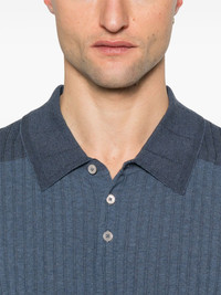 ribbed-knit polo shirt Highlights - Indigo blue - Short front button fastening - Ribbed cuffs and hem - Short sleeves Imported Composition Cotton 100% SIZE & FIT Model measurements Height 6 ft 2 in(1.87 m) Bust/Chest 37.79 in(96 cm) Hips 37.79 in(96 cm) Waist 30.31 in(77 cm) Measurement CHEST 43.3 in(110 cm) SLEEVE LENGTH 17.71 in(45 cm) LENGTH 25.59 in(65 cm) Shoulder Width 18.5 in(47 cm) FittingInformation Designed for a slim fit, this polo shirt offers a comfortable fit that sits just away from the body The ribbed hem offers a close, comfortable fit Made with a lightweight knit, this piece offers some stretch