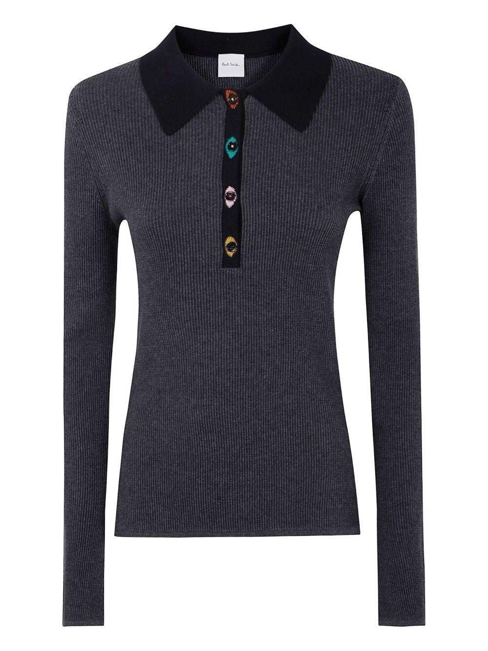 ribbed sweater Highlights - Black - Ribbed knit - Contrasting collar - Embroidered buttons - Long sleeves Imported Composition Fabric 100% Washing instructions Read Manufacturer Guidelines