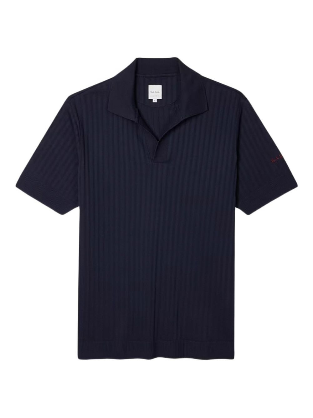Navy Ribbed Cotton Open-Collar Polo Shirt