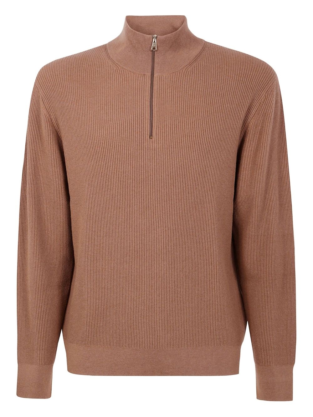 ribbed zip-neck sweater Highlights - Light rust brown - Ribbed texture - High neck - Zip fastening - Long sleeves - Buttoned cuffs Imported Composition Merino 100% Washing instructions Read Manufacturer Guidelines