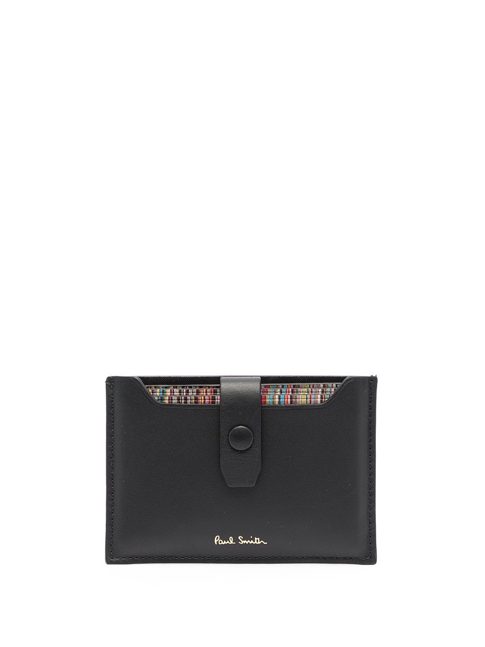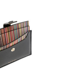 Signature stripe pull out card holder black leather rainbow stripe detailing embossed logo to the front press-stud fastening card slots Made in Italy Composition Calf Leather 50%, Lamb Skin 50% SIZE & FIT Measurement DEPTH 0.19 in(0.5 cm) LENGTH 2.75 in(7 cm) WIDTH 3.93 in(10 cm)