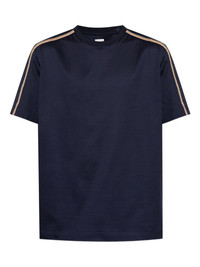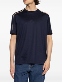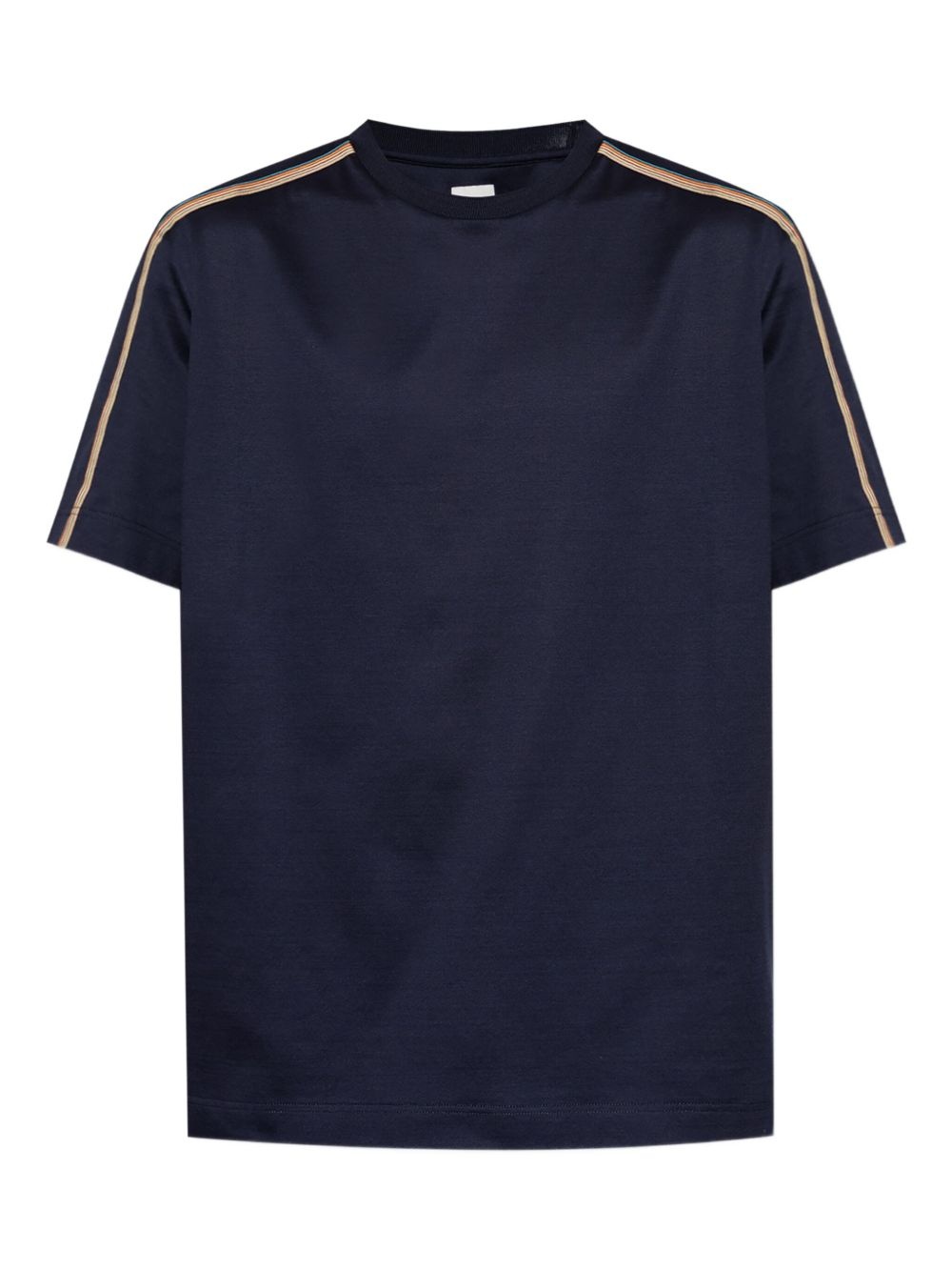 Navy Mercerised Cotton 'Signature Stripe' Shoulder Trim T-Shirt