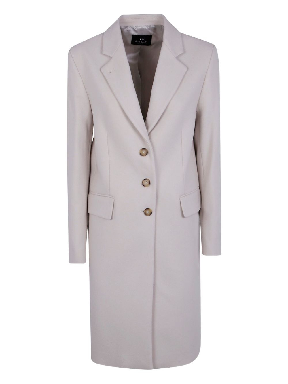 single-breasted wool coat Highlights - Light beige - Front button fastening - Notched lapels - Front flap pockets - Long sleeves - Buttoned cuffs Imported Composition Wool 100% Washing instructions Read Manufacturer Guidelines