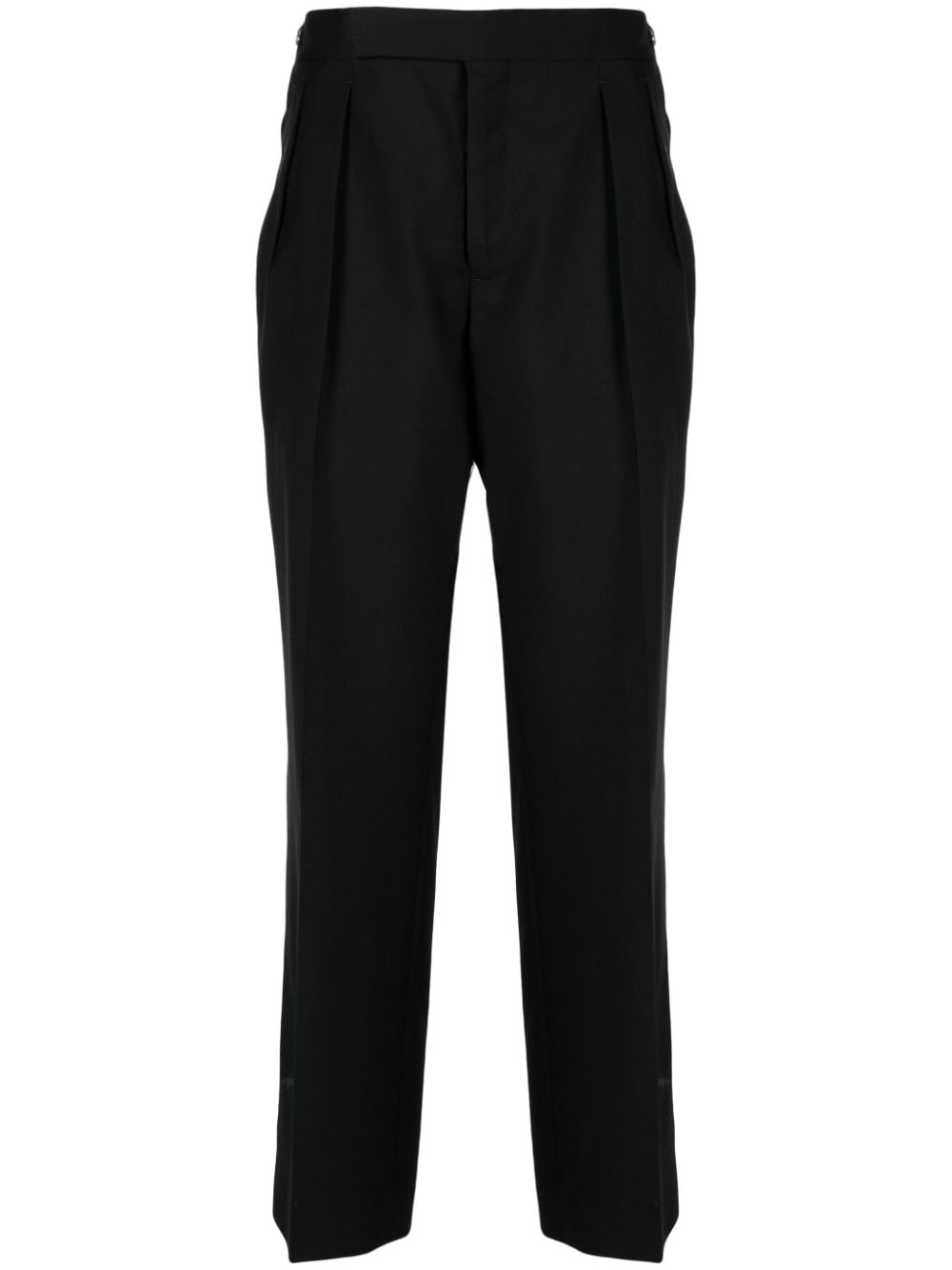 double-pleat tailored trousers Highlights - Black - Wool - Pleat detailing - Concealed front fastening - Adjustable side straps - Straight leg - Two diagonal pockets to the sides - Two rear welt pockets - Straight hem Imported Composition Outer: Wool 100% Lining: Cupro 100% SIZE & FIT Model measurements Height 6 ft 2 in(1.87 m) Bust/Chest 31.49 in(80 cm) Hips 37.79 in(96 cm) Waist 27.95 in(71 cm) FittingInformation Designed for a straight-leg, allowing for an unrestricted and comfortable fit over the leg The adjustable tabs allow for fitted preferences Made from a midweight non-stretch fabric This piece fits true to size – take your usual size Washing instructions Dry Clean Only