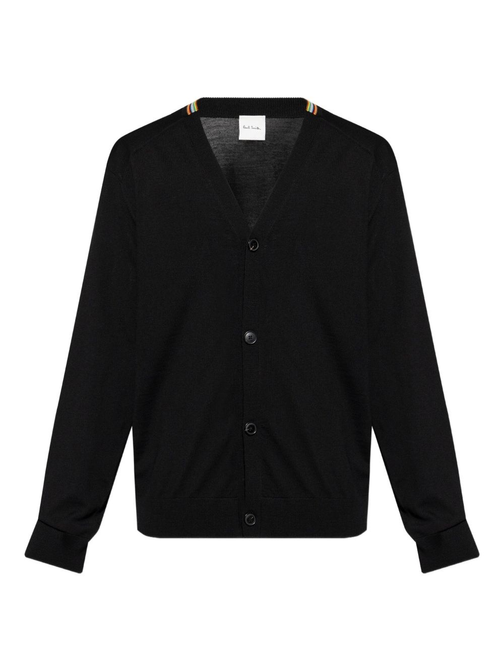 stripe-detail cardigan Highlights - Black - V-neck - Button fastening - Long sleeves - Ribbed trims - Stripe detail at neckline Imported Composition Merino 100% SIZE & FIT FittingInformation Designed for a relaxed fit, this piece allows for comfort and movement when worn Made with a midweight knit, this piece offers some stretch Washing instructions Machine Wash