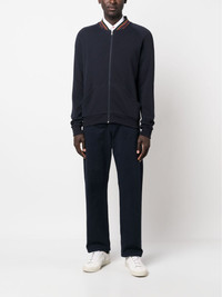 stripe-detail cotton jacket Highlights - Navy blue/multicolour - Cotton - Stripe detailing - Band collar - Front zip fastening - Two front pouch pockets - Long sleeves - Elasticated cuffs and hem - Straight hem Imported Composition Cotton 100% SIZE & FIT Model measurements Height 6 ft 2 in(1.87 m) Bust/Chest 36.41 in(92.5 cm) Hips 37 in(94 cm) Waist 29.52 in(75 cm) FittingInformation Designed for a regular fit, offering a comfortable loose fit throughout the body Made from a midweight non-stretch fabric, this piece offers minimal elasticity when worn This piece fits true to size – take your usual size Washing instructions Machine Wash
