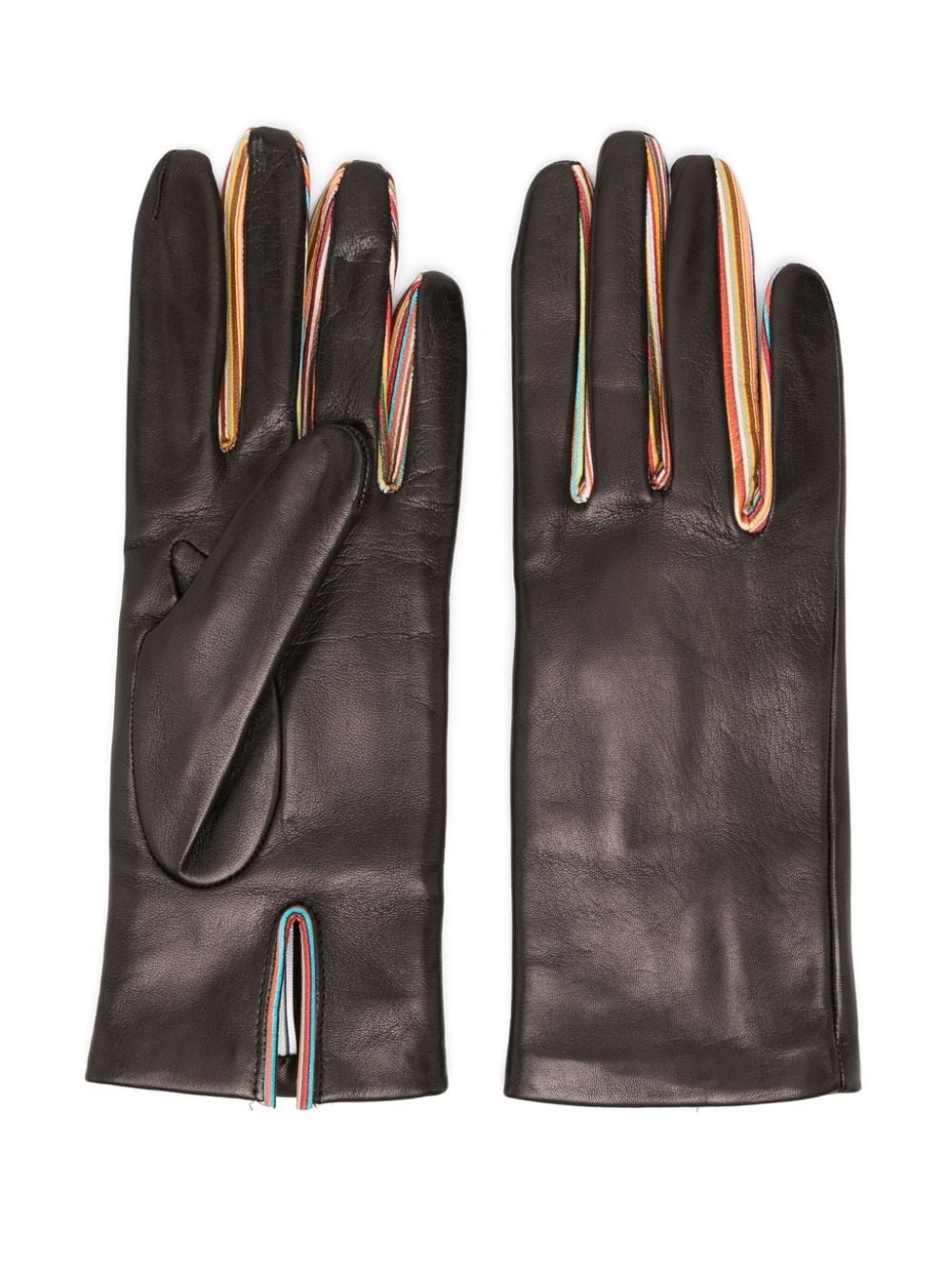 stripe-detail leather gloves Highlights - Black/multicolour - Leather/wool blend - Stripe detailing - Front slit - Slip-on style Made in Italy Composition Outer: Lambskin 100% Lining: Wool 55%, Cashmere 30%, Silk 15% Washing instructions Specialist Cleaning