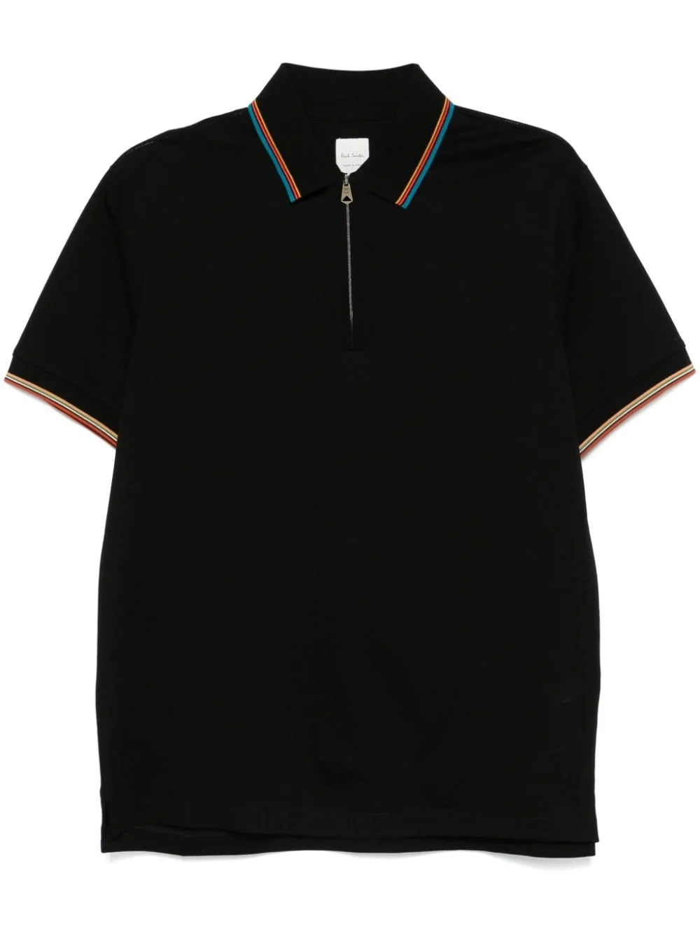 Black Cotton 'Signature Stripe' Trim Zip Polo Shirt