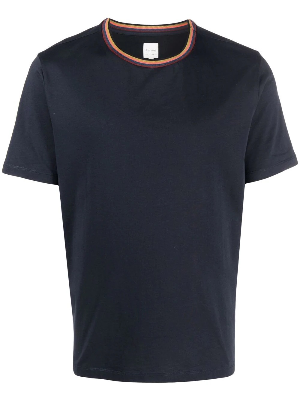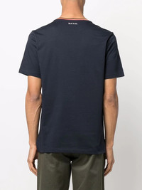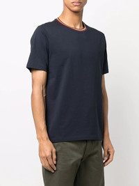 stripe-trim organic cotton T-shirt Highlights - Dark navy - Organic cotton - Stripe trim - Logo print to the rear - Round neck - Short sleeves - Straight hem Imported Composition Organic Cotton 100% SIZE & FIT Model measurements Height 6 ft 2 in(1.87 m) Bust/Chest 38.18 in(97 cm) Hips 36.61 in(93 cm) Waist 29.13 in(74 cm) Measurement CHEST 39.37 in(100 cm) LENGTH 27.16 in(69 cm) SLEEVE LENGTH 8.66 in(22 cm) Shoulder Width 17.32 in(44 cm) FittingInformation This piece fits true to size. We recommend you get your regular size Cut for a relaxed fit Made with a mid-weight fabric Washing instructions Machine Wash