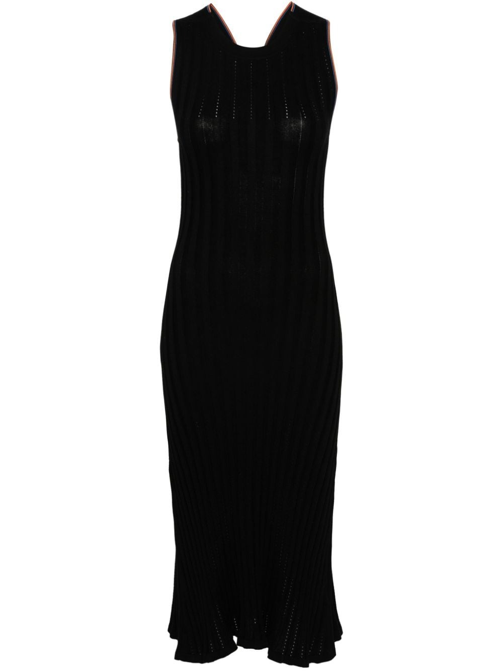 stripe-trim ribbed maxi dress Highlights - Black/multicolour - Cotton - Chunky ribbed knit - Openwork areas - Artist stripe-pattern trim - Crossover strap detail to the rear - Crew neck - Sleeveless - Square open back - Ankle-length - Curved hem - Unlined Imported Composition Cotton 100% SIZE & FIT Model measurements Height 5 ft 10 in(1.77 m) Bust/Chest 29.92 in(76 cm) Hips 34.25 in(87 cm) Waist 23.62 in(60 cm) FittingInformation Designed for a slim fit that sits just away from the body offering a close yet comfortable fit Made with a midweight knit, this piece offers some stretch This piece fits true to size – take your usual size