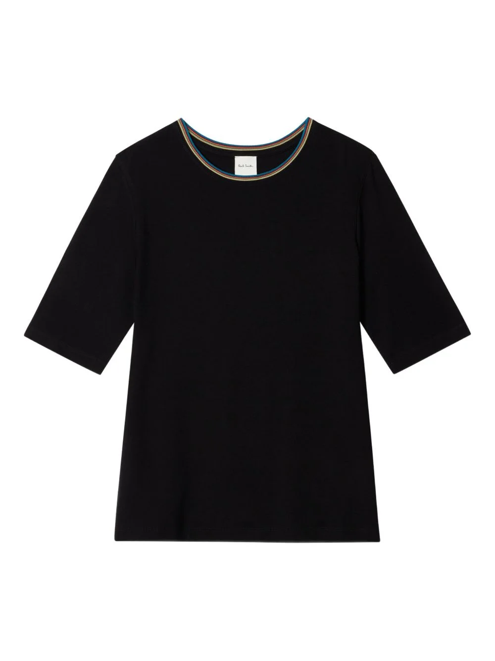 Stripe-trim T-shirt Highlights - Black - Stripe trim - Crew neck - Short sleeves Imported Composition Cotton 100%, Polyester 92%, Elastane 8% Washing instructions Machine Wash