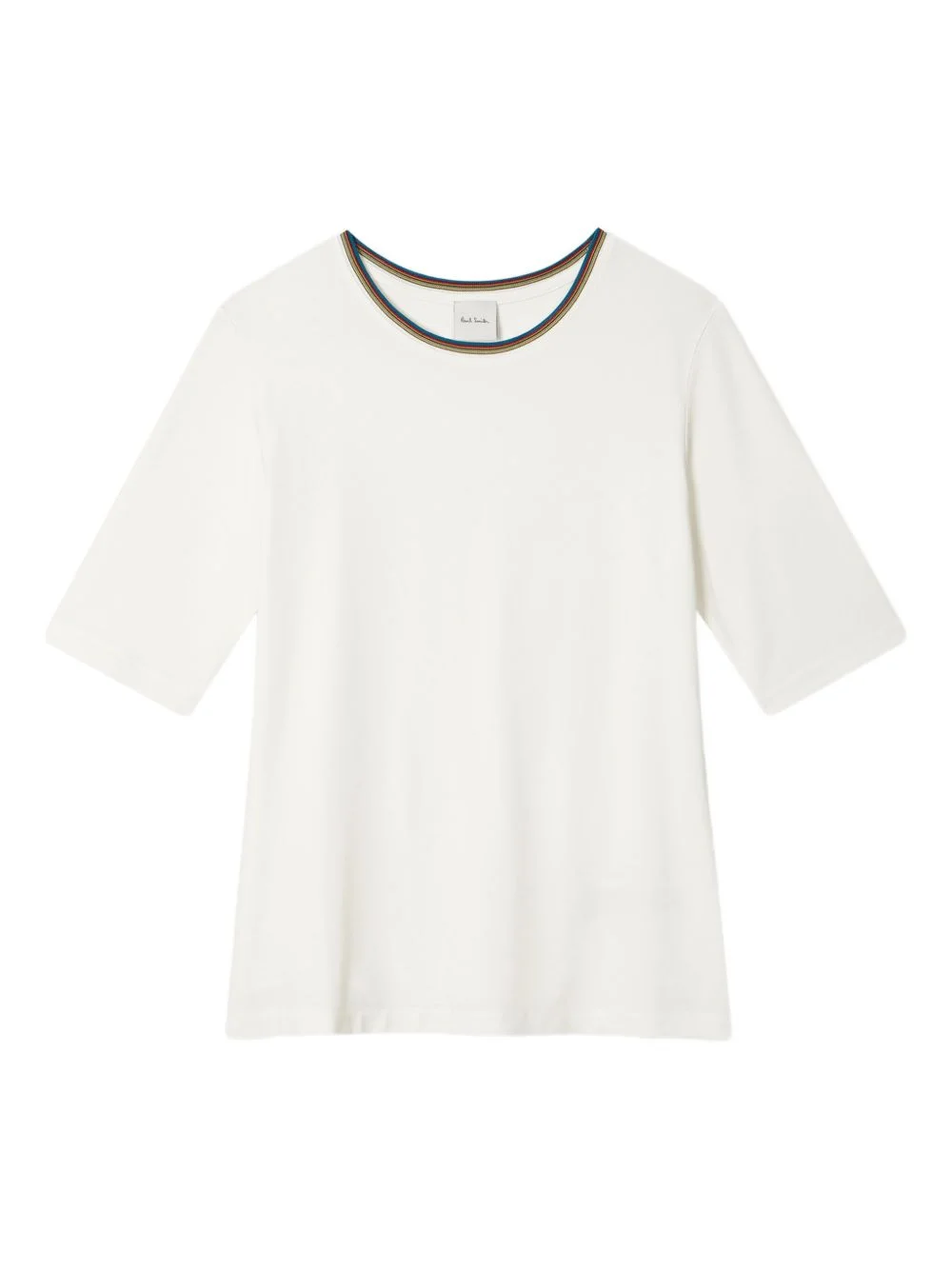 Stripe-trim T-shirt Highlights - White - Crew neck - Stripe trim - Short sleeves Imported Composition Cotton 100%, Viscose 92%, Elastane 8% Washing instructions Machine Wash