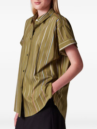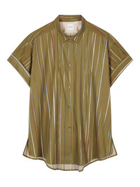 striped buttoned shirt Highlights - Olive green - Striped pattern - Button fastening - Short sleeves - Side splits Imported Composition Lyocell 70%, Cotton 30% Washing instructions Dry Clean Only